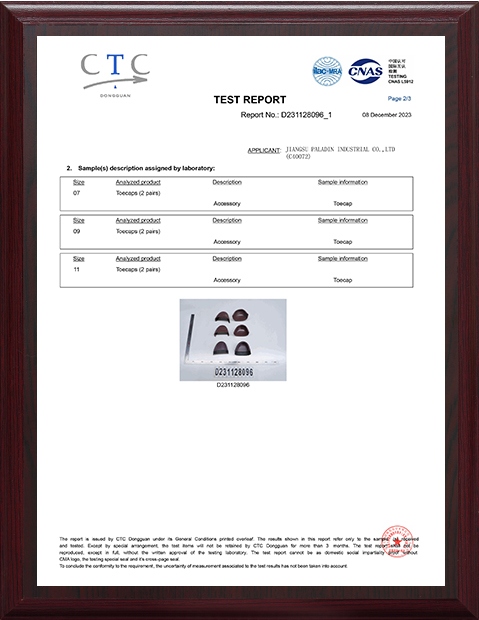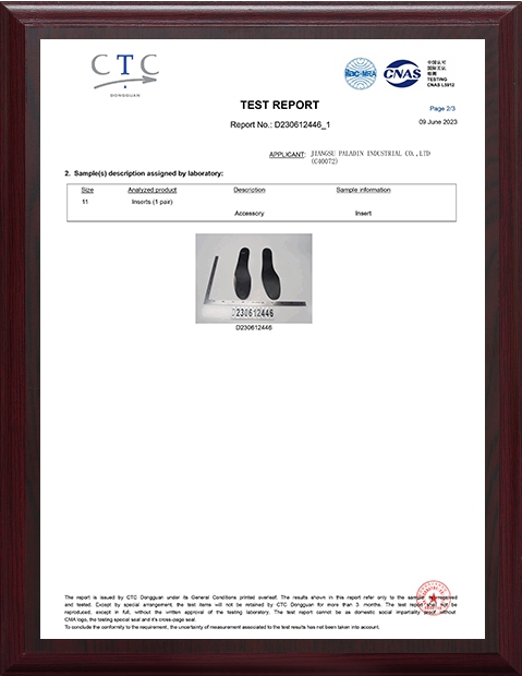 Inspektur memeriksa kualitas bahan yang masuk dan keluar. Tim QA profesional memantau prosedur produksi, menjalankan tes reguler, mencatat produk cacat dan mengawasi setiap prosedur. Mereka juga merekomendasikan adjsutment untuk perakitan dan proses produksi untuk memastikan bahwa Paladin Toe Caps dan Midsole selalu bertemu dan tetap di atas standar.